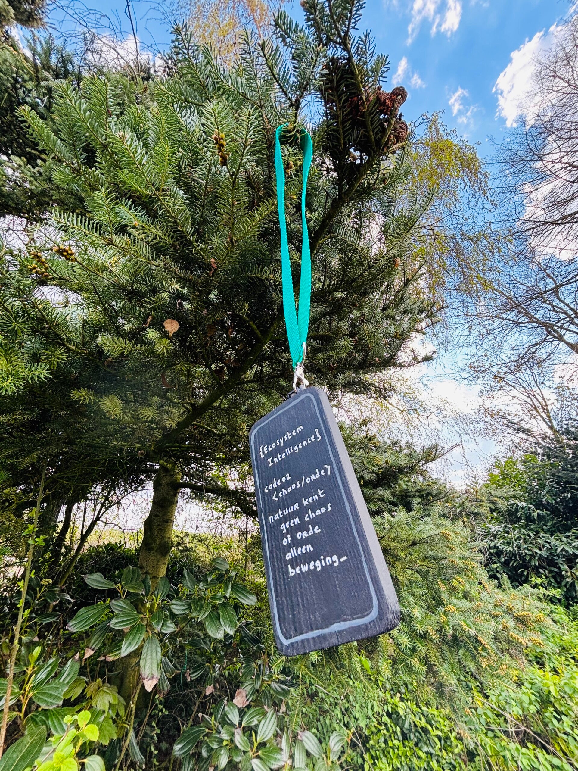 { BUITENKUNST } Er is een verschil tussen het zintuiglijke en een scherm. Voelen, ervaren en beleven is multidimensionaal. Natuur spreekt een andere taal dan computersystemen. Een scherm is een spiegel van het aardse: plat, eenzijdig, rechtlijnig. Terwijl natuur interactief, veelzijdig en vloeiend is. Kunst en natuur overlappen elkaar in mijn beleving. Daarom wil ik een reizende kunstbeleving van Ecosystem Intelligence gaan maken, die op verschillende buitenlocaties te zien zal zijn...