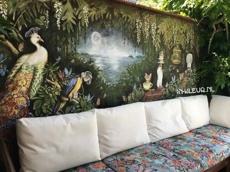 Muurschilderingen (2000 - 2022) Na mijn afstuderen aan de WDKA heb ik mij een tijd lang gespecialiseerd in het maken van muurschilderingen in opdracht voor zowel particulieren als bedrijven. Van grote projecten zoals bij een museum, zwembad of restaurant tot kleine schilderingen in babykamertjes. Hieronder een kleine selectie van alle muurschilderingen die ik in 20 jaar tijd heb gemaakt: