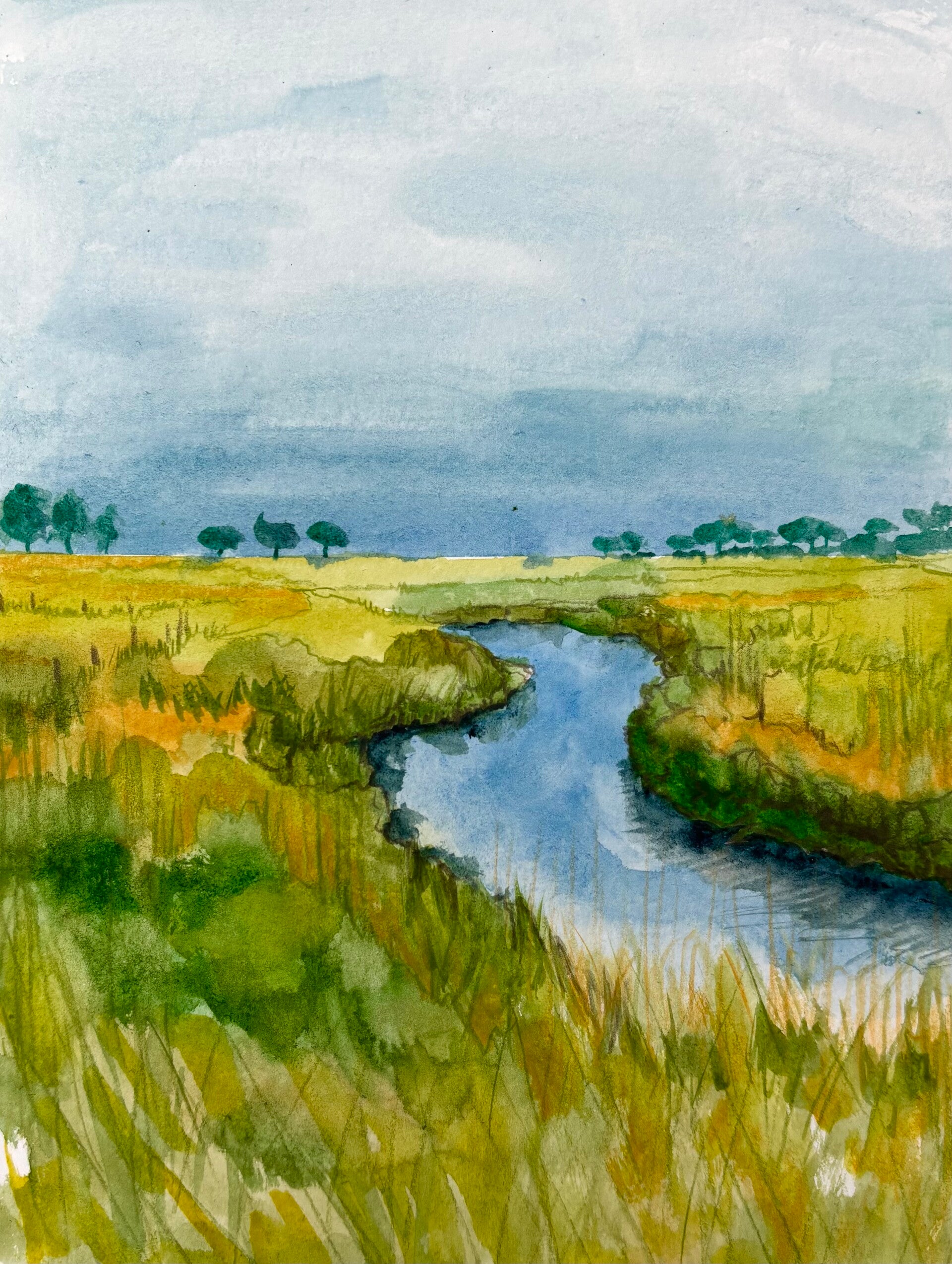 De rivier en ik (2025 - 2026) Wandelen door het Hunzedal, verwonderen en tekenen: een beeldverhaal over mijn tocht langs de rivier de Hunze en het bijzondere project Het Hunzedal, vanaf Exloo noordwaarts door de provincies Drenthe en Groningen. Een bijzonder boek in wording, waarbij ik beleving via beeld wil laten ontstaan. Aquarel met potlood.