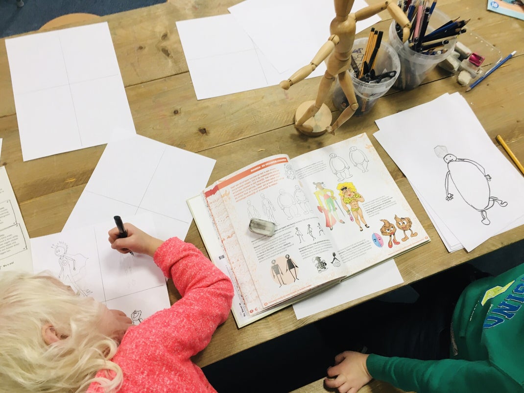 De Makersplaats in de Bibliotheek Katwijk is een werkplaats voor kleine makers, een plek waar je kunt creëren en waar ideeën tot leven komen. Het is een ‘doe-afdeling’ waar kinderen van 4 t/m 12 jaar op een interactieve en speelse manier aan de slag gaan met 21ste eeuwse vaardigheden. De Makersplaats is dé plek waar het draait om ontdekkend leren. Op deze plek organiseerde ik de Tekenbende op woensdagmiddag: verschillende ontdektafels waar allerlei actviteiten tegelijkertijd plaatsvonden en gecombineerd konden worden. Zoals tekenen, schilderen, knutselen en kunst maken. Steeds met een thema uit boeken of verhalen. Zo maakten de kinderen mozaïek met Alice in Wonderland en ontwierpen we onze eigen boomhut met 39 verdiepingen. Fantasie kent geen grenzen!