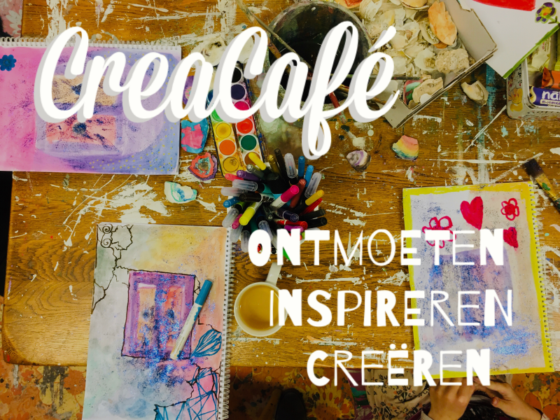 Ontmoeten, inspireren en creëren! Even een moment uit de comfort-zone en jouw creativiteit weer laten stromen. Dat is het CreaCafé. We laten ons inspireren door een thema uit de kunst en filosofie. Zoals: Vervreemding met Picasso, of omkeren met Monet en Plato. Of met Verwonderzinnen zoals: Ben jij van steen? En gaan dan aan de slag met verschillende materialen, zoals krijt, verf, hout en stof. Maar... niets gaat zoals gewoonlijk en ik daag je uit net dat stapje verder te gaan! Zo verleg je je grenzen van verbeelding en creatiekracht. Natuurlijk allemaal onder het genot van een hapje en een drankje. Het CreaCafé is al op verschillende plekken en tijdens diverse evenementen geweest. Na afloop ga je met een hoofd vol nieuwe ideeën en een uniek kunstwerk weer naar huis...